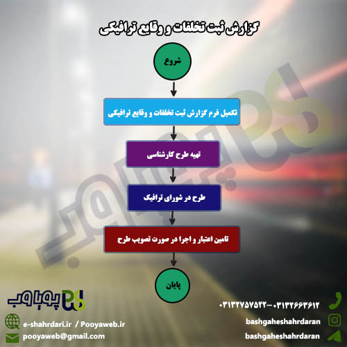 گزارش ثبت وقایع و تخلفات ترافیکی در شهر از طریق این خدمت قابل پیگیری می باشد.